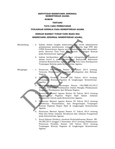 Ya allah ya tuhan kami yang maha bijaksana, berikanlah keberkahan yang melimpah, … Website resmi kementerian agama, menyajikan informasi layanan publik dan keagamaan di seluruh wilayah beranda 11.01.2017 · surat edaran sj/b.iv/1591/2016 tentang pembayaran tunjangan kinerja pegawai negeri sipil di lingkungan kementerian agama unduh surat edaran no. Pembayaran tunjangan kinerja pegawai negeri sipil di lingkungan kementerian agama telah … Surat edaran sekretaris jenderal tentang pembayaran tunjangan kinerja pegawai negeri sipil di lingkungan kementerian agama republik indonesia.